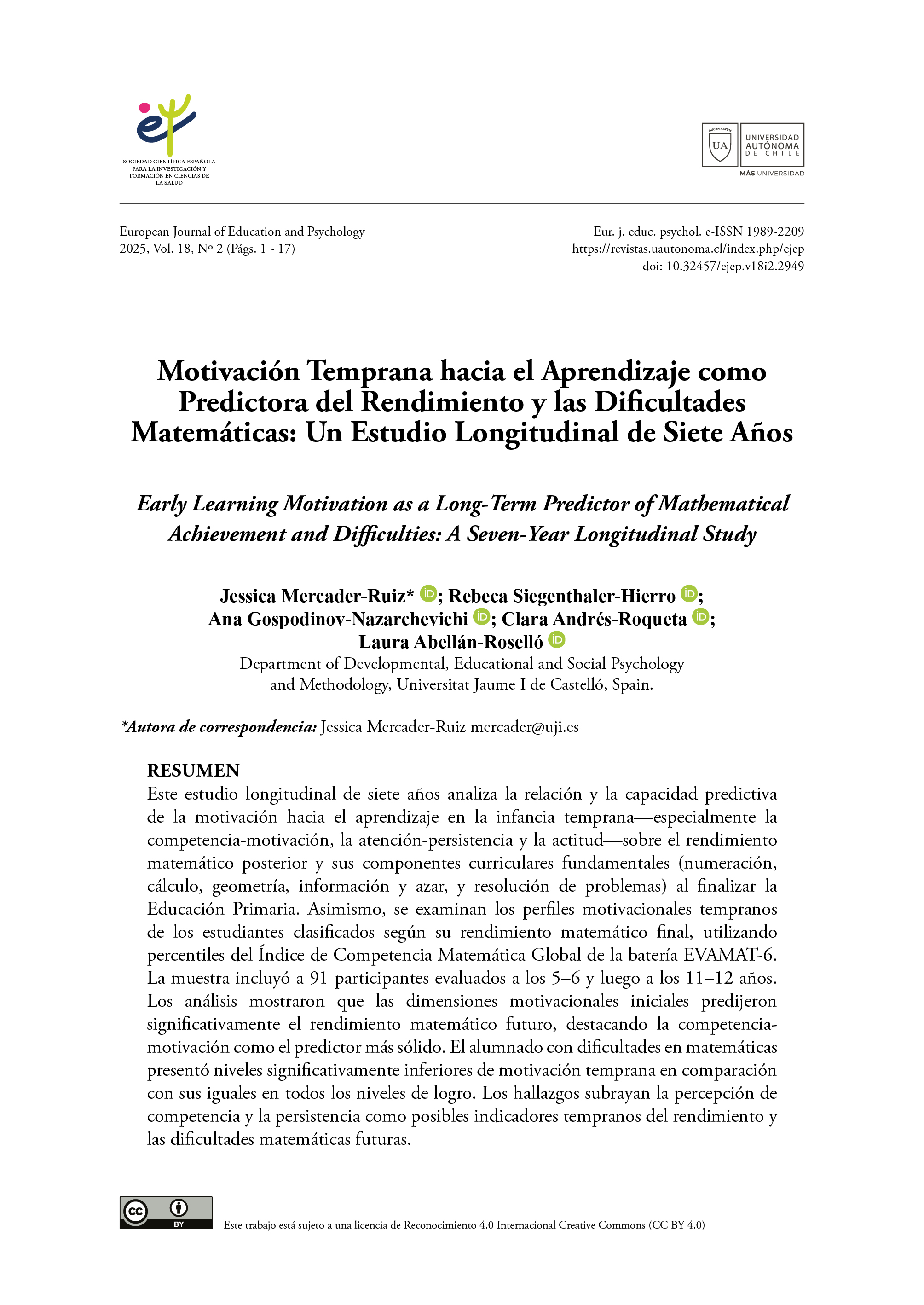 Motivación Temprana hacia el Aprendizaje como Predictora del Rendimiento y las Dificultades Matemáticas: Un Estudio Longitudinal de Siete Años