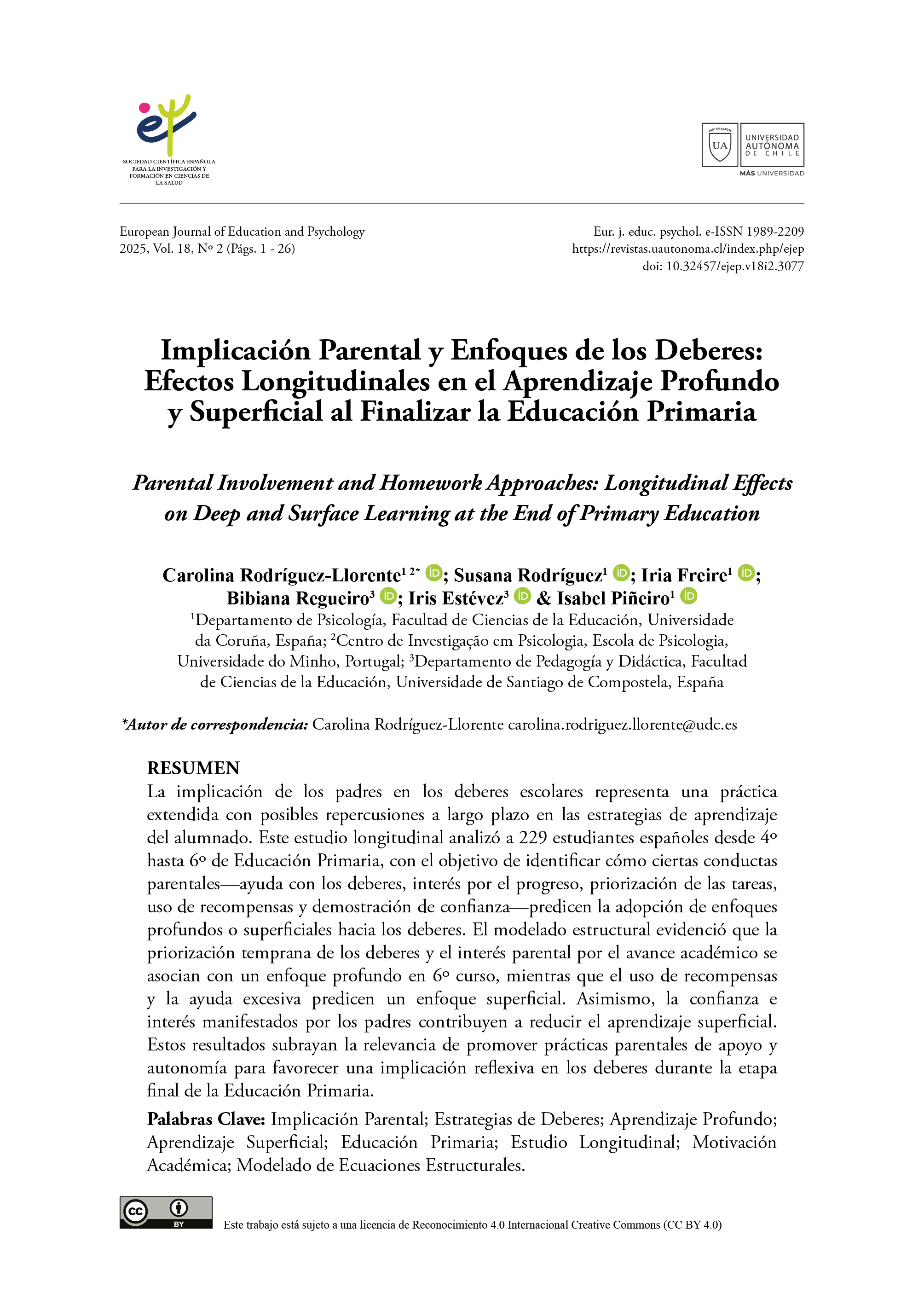 Implicación parental y enfoques de los deberes: Efectos longitudinales en el aprendizaje profundo y superficial al finalizar la educación primaria