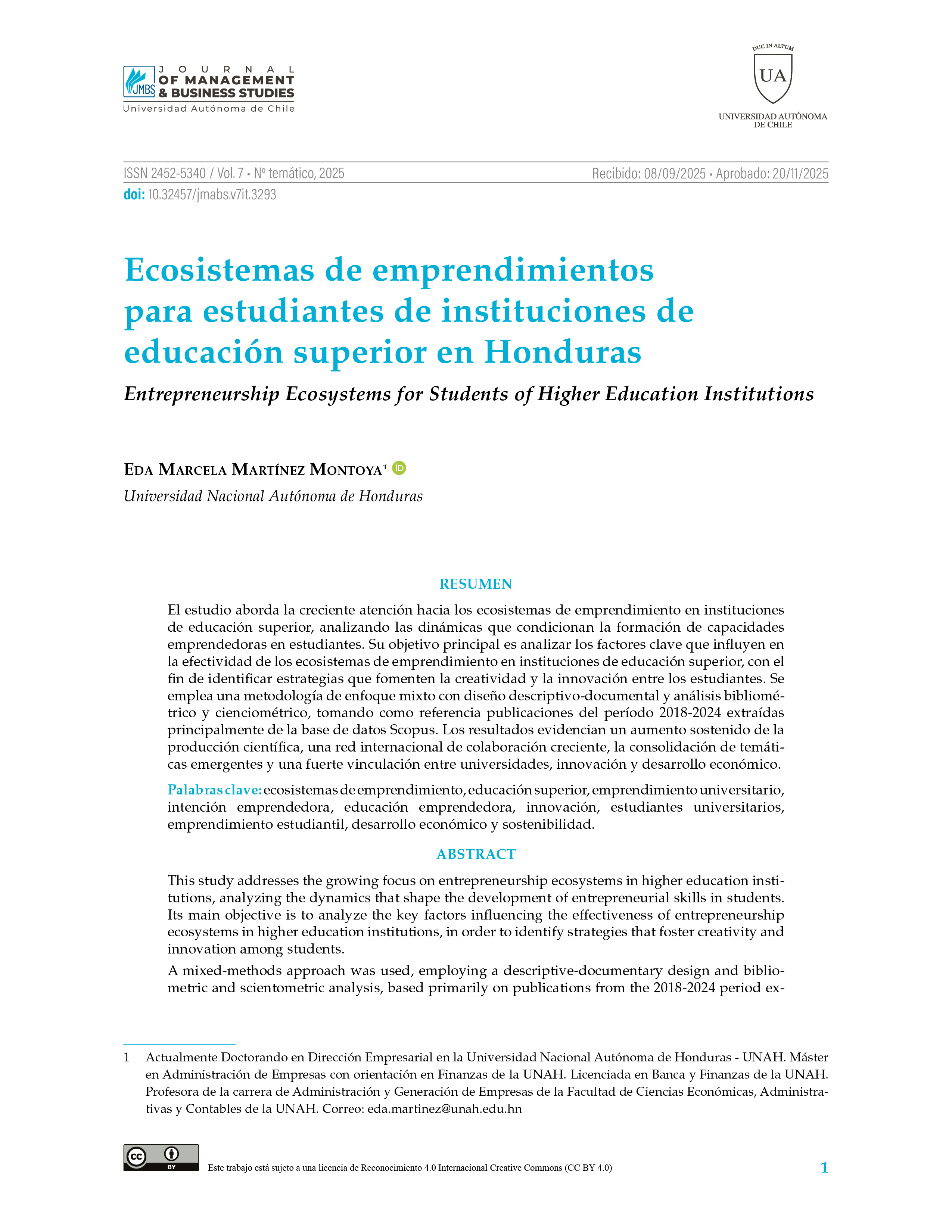 La Revista JM&BS es editada por la Facultad de Administración y Negocios de la Universidad Autónoma de Chile. Es una publicación científica en el área de la administración y negocios, de libre acceso, y que sigue los parámetros internacionales de evaluación.