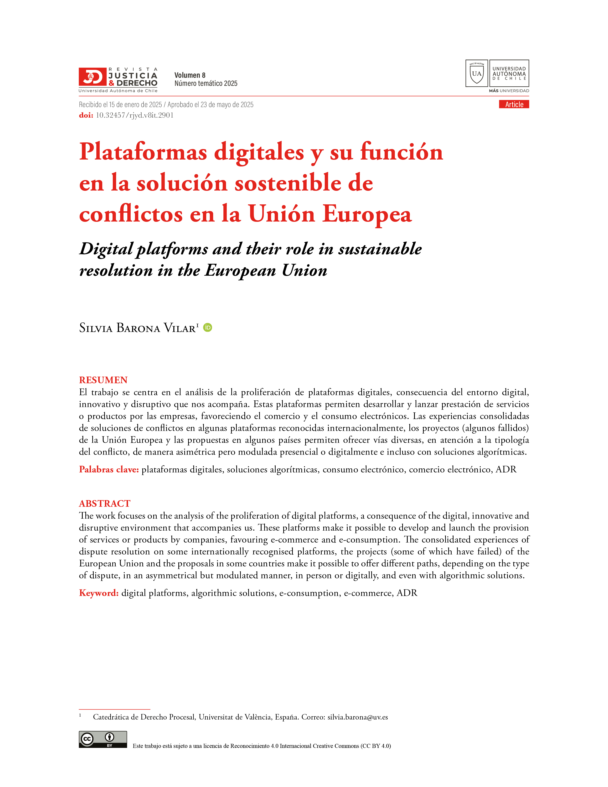 The papers published by the Justice and Law Journal will focus on current, Chilean or comparative law (international contributions), and the grow and development of normative, jurisprudential or doctrinal sources in Spanish, English or Portuguese.