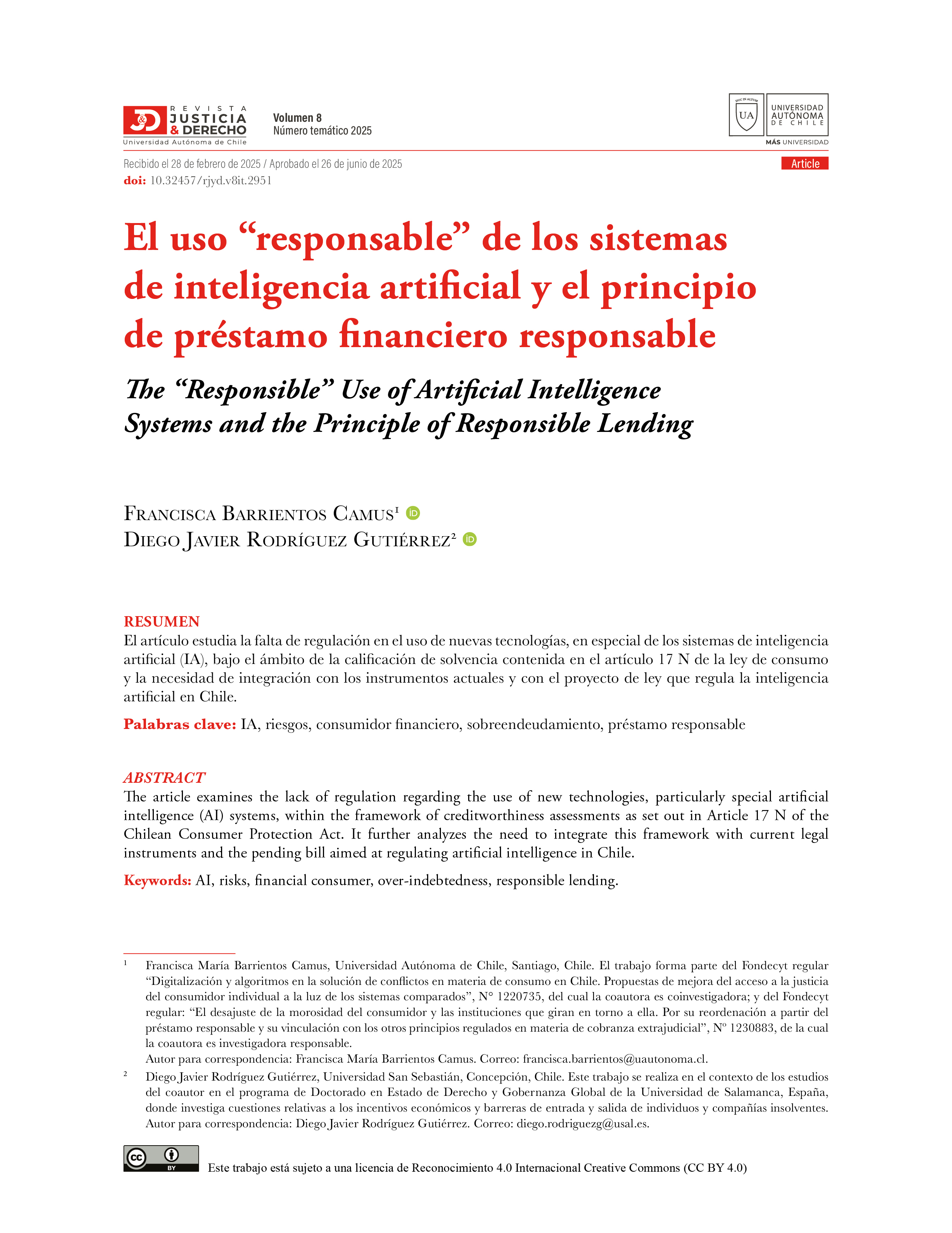 It belongs to the Vice-chacellor of Research and Doctorates of the Universidad Autónoma de Chile (Autonomous University of Chile) and under the scientific supervision of the Research Institute in Law (IID) of the Faculty of Law.