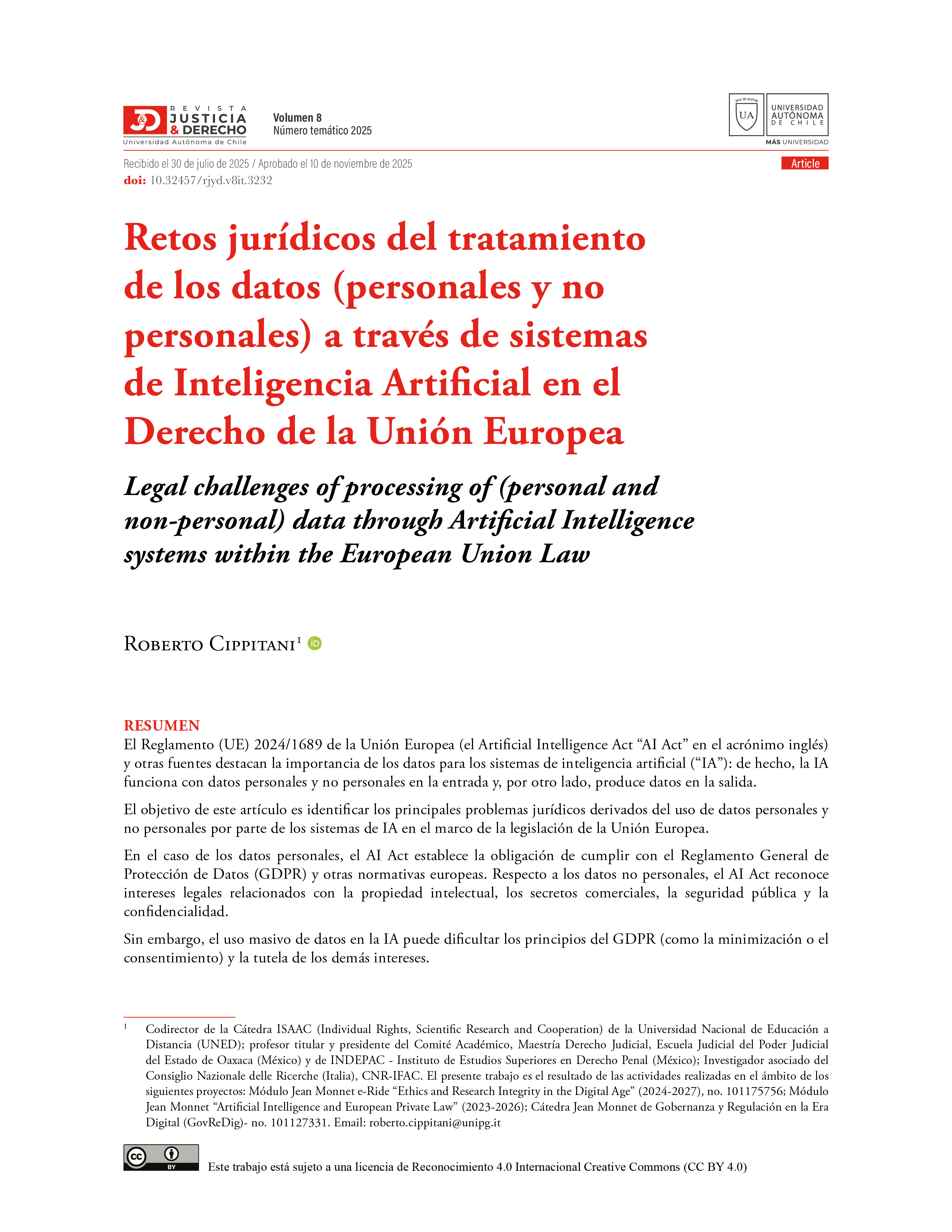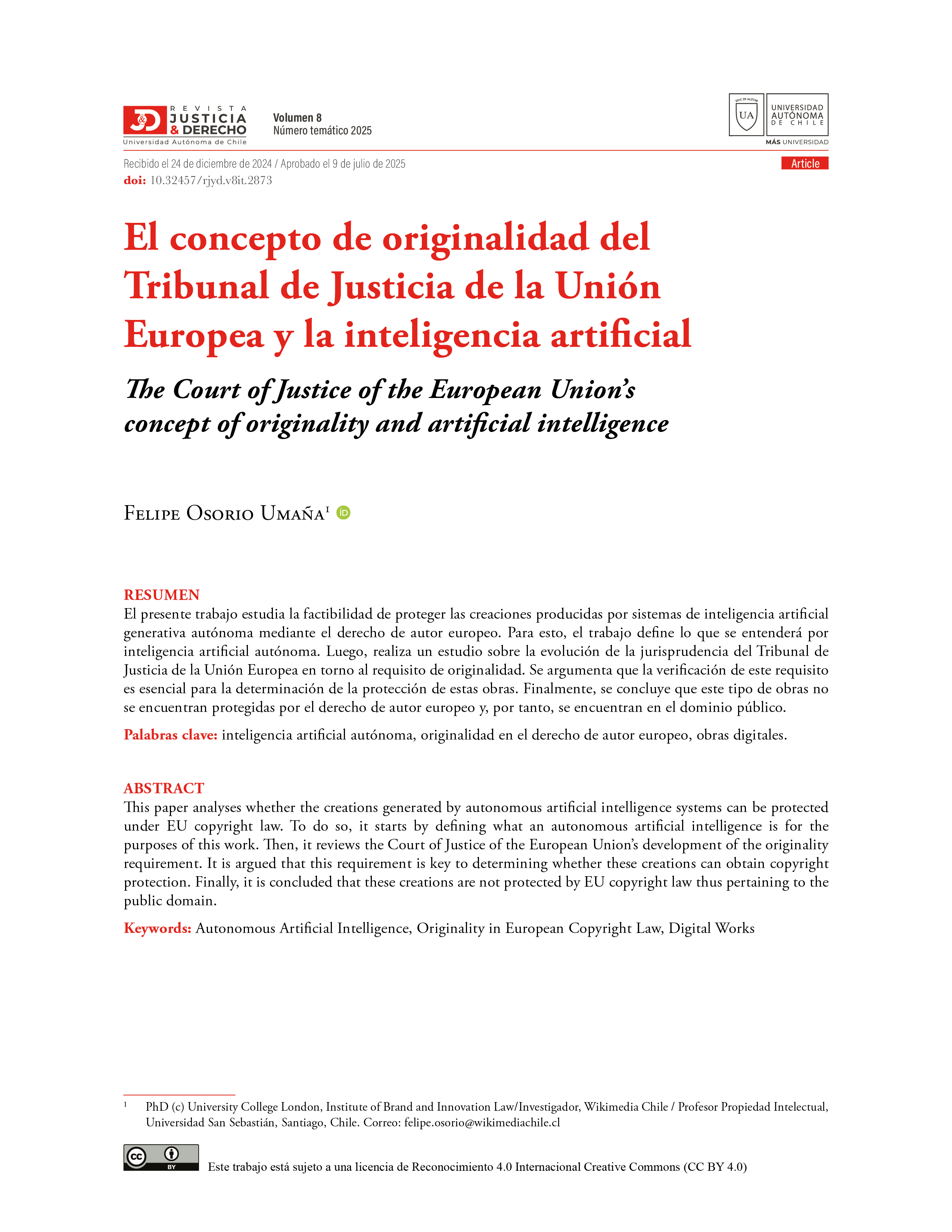 La Revista Justicia & Derecho es una publicación seriada que tiene una periodicidad continua y es sometida a evaluación de pares externos a través del método doble ciego. Pertenece a la Vicerrectoría de Investigación y Doctorados de la Universidad Autónoma de Chile y cuya guarda científica corresponde al Instituto de Investigación en Derecho de la Facultad de Derecho de la casa de estudios.